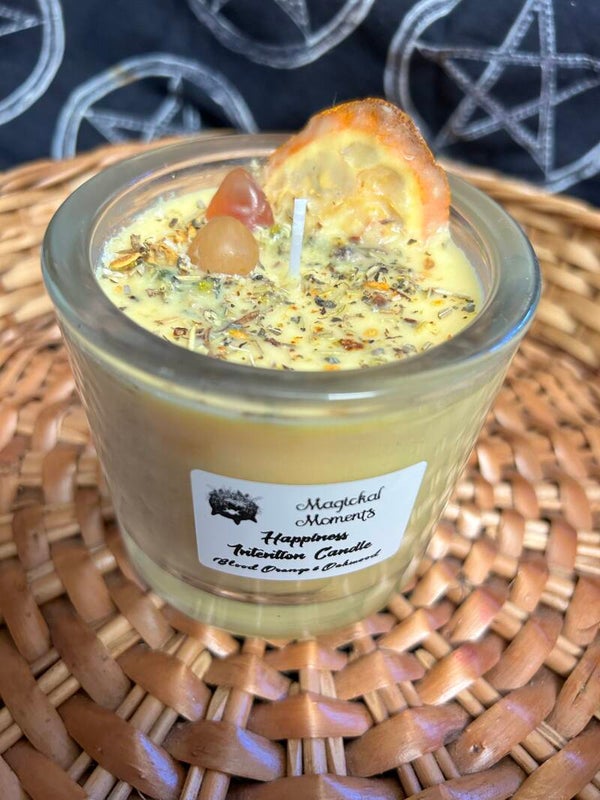 This candle is made with natural coconut wax and filled with magickal intent to help manifest happiness and Joy!