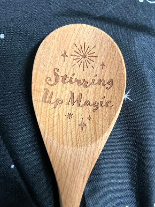 These wooden spoons are an essential for any aspiring Kitchen Witch. Made from ethnically sourced wood and etched with the words 'Witches Brew' or Stiring Up Magic' which will you pick?