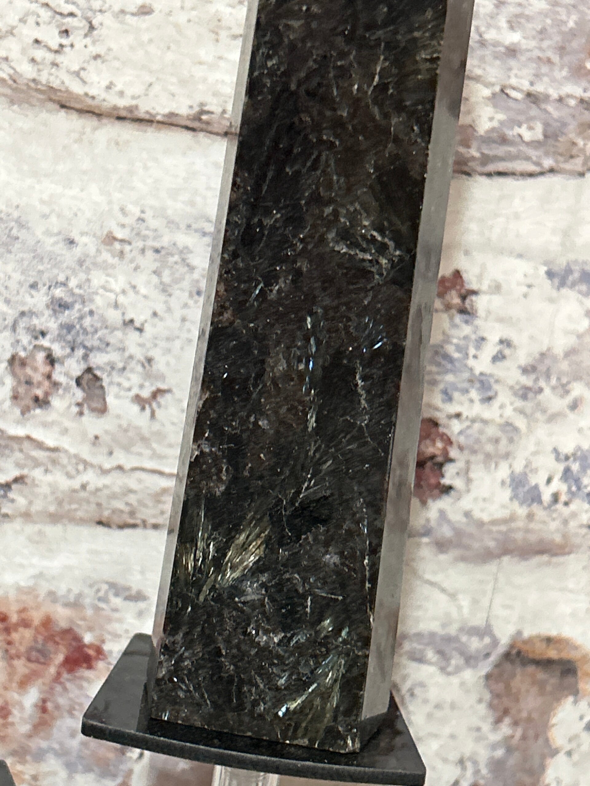 Arfvedsonite Crystal is also known as Firework Crystal and just like fireworks against the night sky this big beauty's shimmering effect is truly breathtaking!