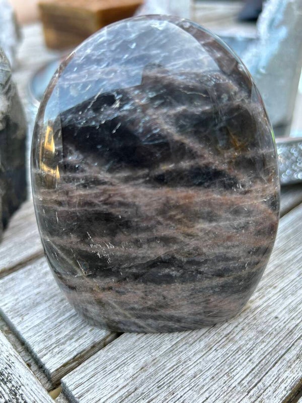 Black moonstone emits a soothing energy that calms and balances the mind and promotes inner strength and resilience. It is also said to have grounding and protective qualities and to be helpful to people going through difficult times as it offers healing for the emotions.