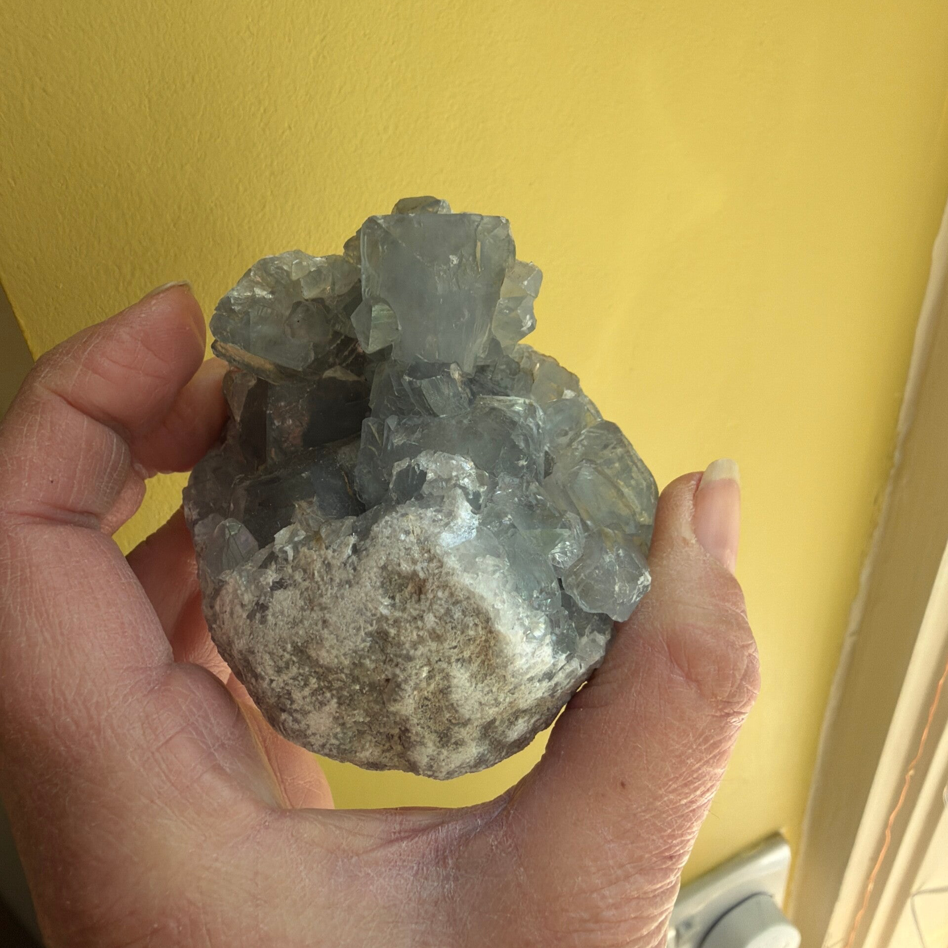 This high grade Celestite cluster, is so sparkling, showing off the natural gem shapes.