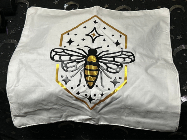 Zip up white cotton cushion cover with printed design.
